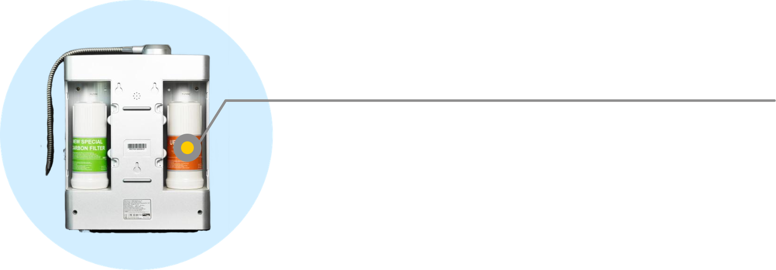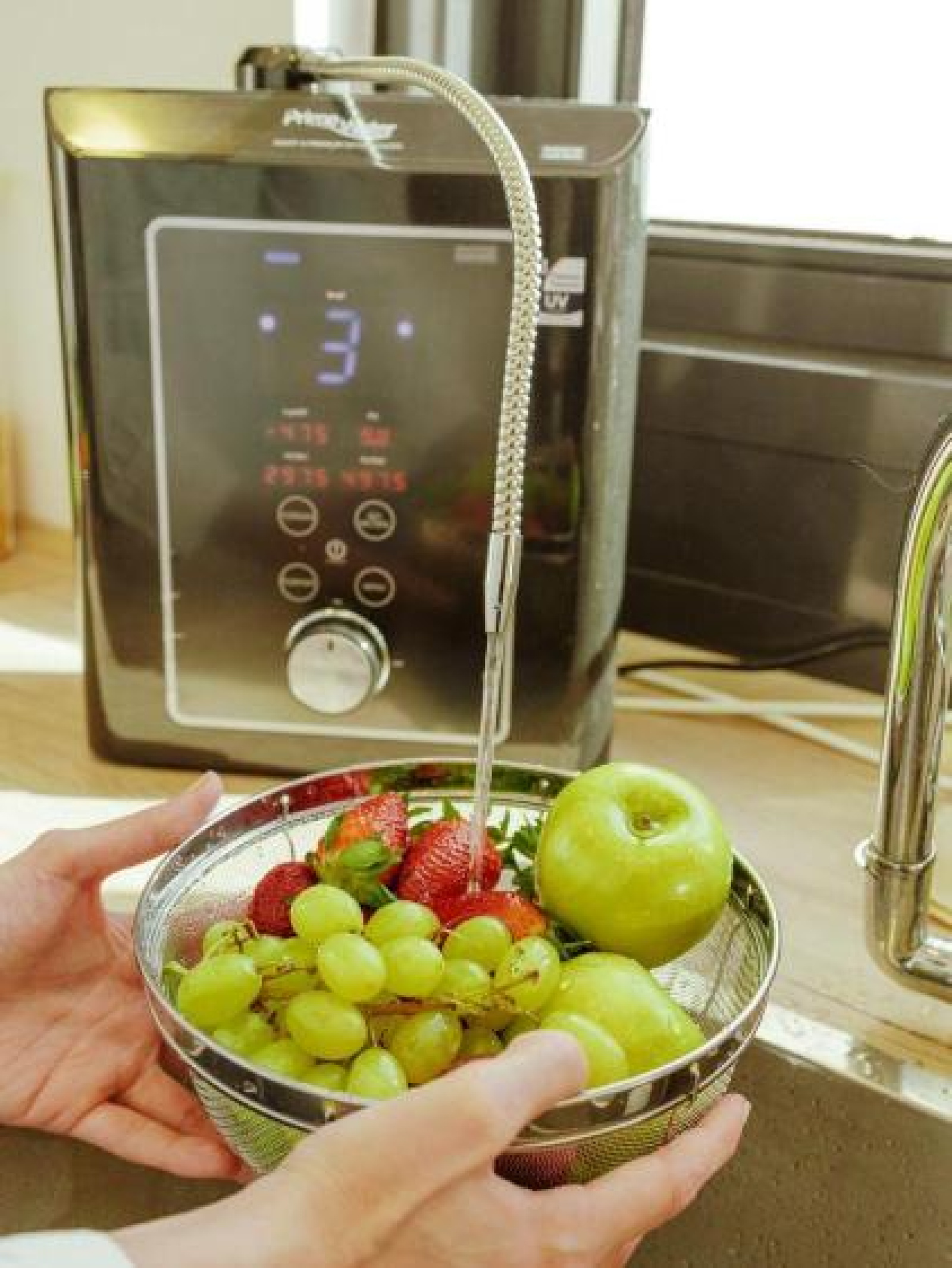 يزيل الجهاز بفضل فلاتر متعددة وصفائح تيتانيوم مغطاة بالبلاتين الشوائب الضارة والمعادن الثقيلة، ليمنحك ماءً نقياً بنسبة 100%.